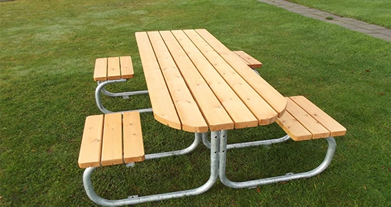 Ryg og bordplade leveres færdig samlede med afrundede hjørner.