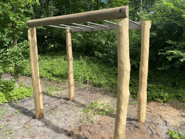 Armgang udført med flækket kantskåret robinie og robiniestolper.