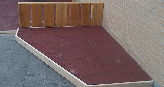 Sikkerhedsfliser støbt i genbrugsgummi.