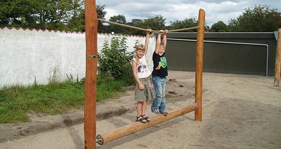 Den rullende stamme udføres i afsplintede robiniestolper med drejet lærkestolpe som rullende bom og taifunstrop som håndtov.