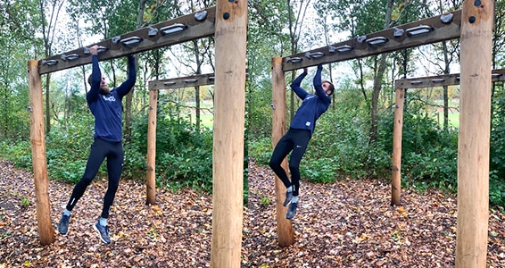 Egeplanker som overligger med greb.