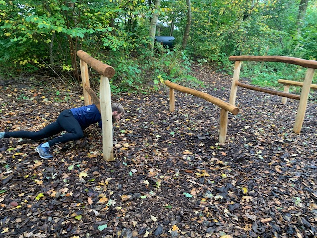 Bomme i to forskellige højder som springe/kravle over- krybe under.
