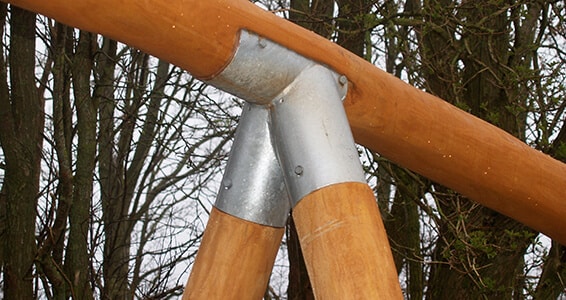 Stærk og sikker samling med lukkede galvaniserede stålbeslag forhindrer problemer med vinkler ved hals/ben og forhindrer revner i stolpeender, samt sikrer maksimal stabilitet.