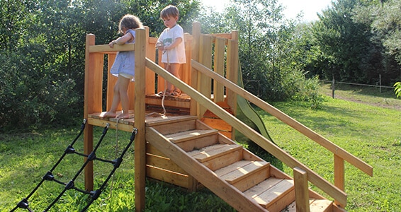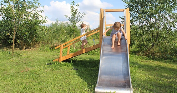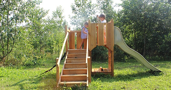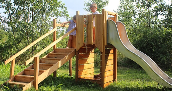 Med trappe, rutschebane med ligeløb , klatretov og tunnel.