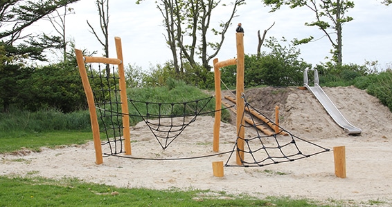 Bundgarnspælene giver med sine skrå og vredne net masser af klatremuligheder.