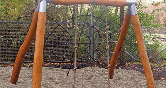 Edderkoppespind i taifuntov & to knudetove ophængt i stativ af afsplintede og pudsede robiniestolper.