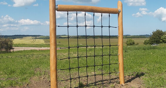 Klatrenet ophængt i galger og stativer af robiniestolper
