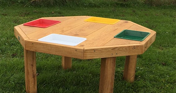 Ottekantet egetræsbord til nærstudering af kriblekrableliv og andre eksperimenter.