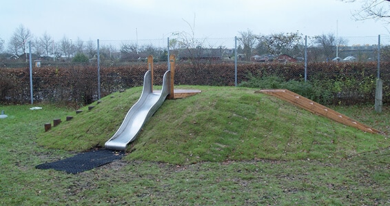 Snabelrutsjebaner i rustfrit stål, til opstilling som terrænrutsjebaner monteret på repos eller til montering på tårne. Lang levetid og minimal vedligeholdelse.