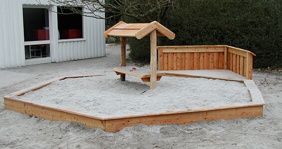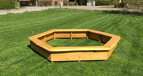 • Sekskantet sandkasse i eg eller robinie. Høj finish og gennemført kvalitet.