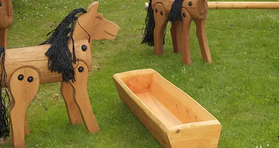 Til en dyregruppe hører selvfølgelig et fodertrug, så der kan fodres og vandes.