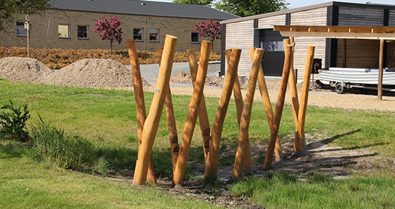 - Udført i afsplintede og pudsede robiniestolper Ø 14 – 16 cm.
