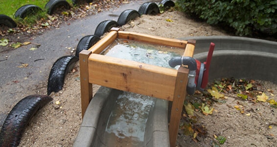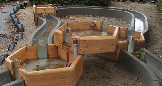Vandlegen bygget med render og vandborde i forskellig størrelse