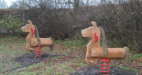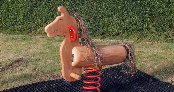 Fjedervippe med hestefigur i robinie / lærk.