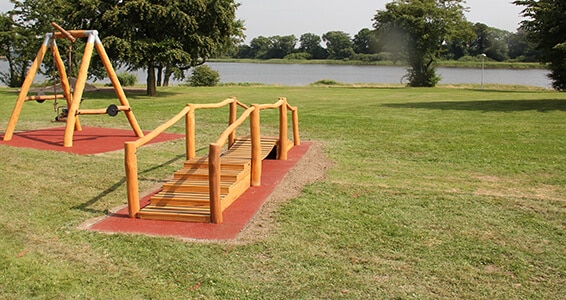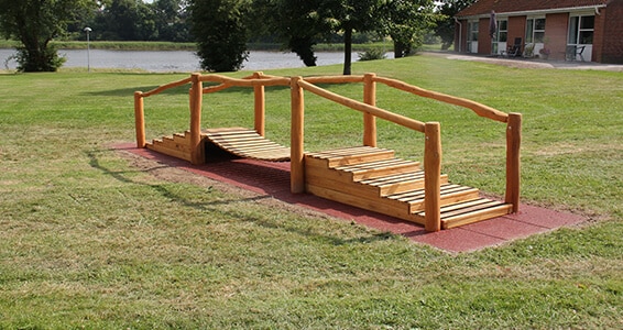 Den svagt buede og ret faste hængebro giver en ekstra udfordring og en følelse af at noget bevæger sig under en.