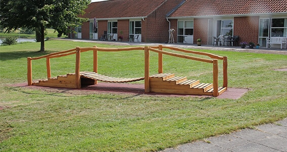 Balancebro udført i terrassebrædder i lærk og robiniestolper.